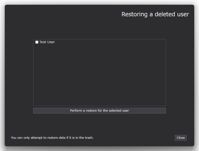 You can only attempt to restore deleted users if they are still in the Windows Recycle Bin.